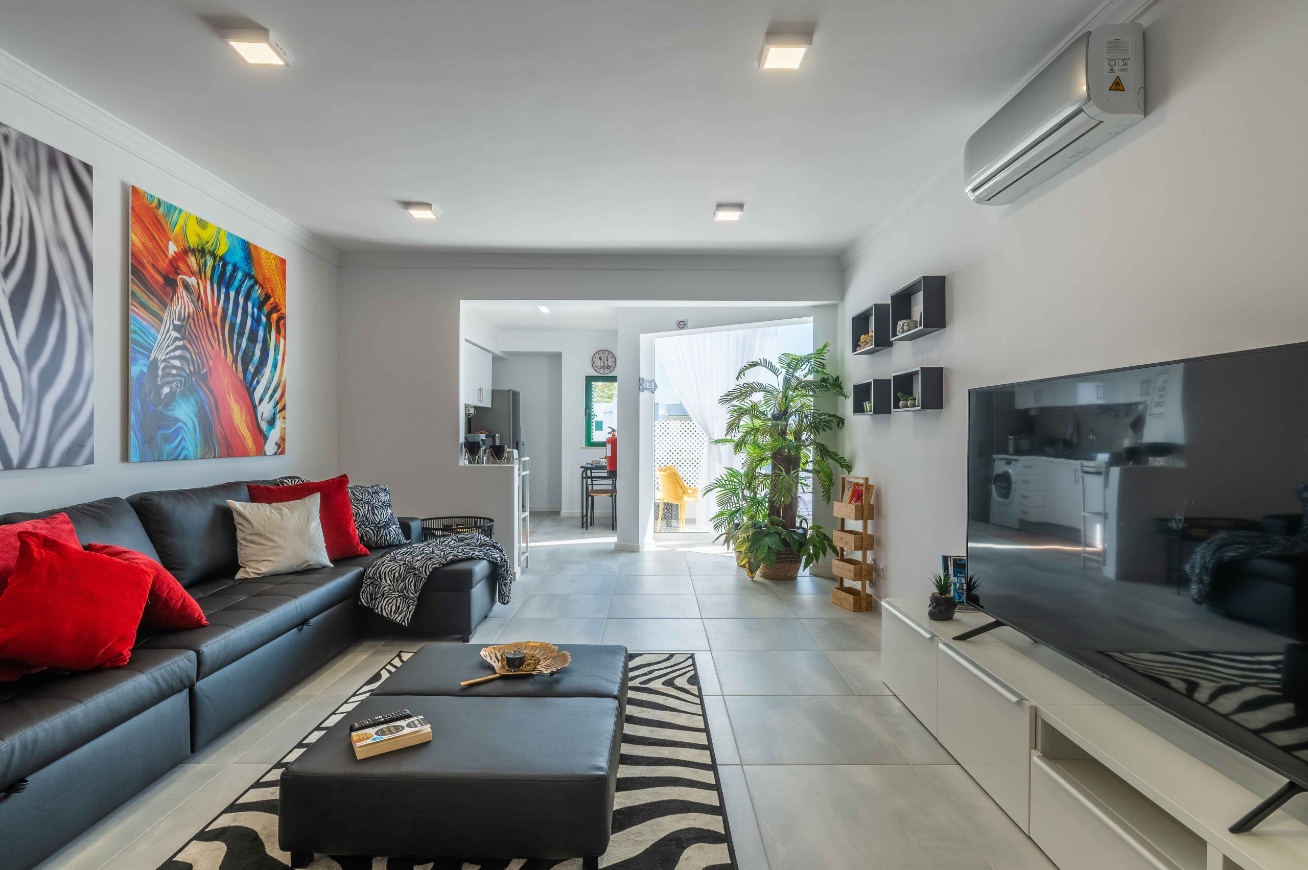 The apartment in Guia has 2 bedrooms and has capacity for 4 people. The apartment is 75 m². The accommodation is equipped with the following items: lift, washing machine, iron, internet (Wi-Fi), hair dryer, balcony, air-conditioned, open-air parking the same building, TV, satellite tv.In the hotplate of glass ceramics open plan kitchen, refrigerator, microwave, oven, freezer, dishwasher, dishes/cutlery, kitchen utensils, coffee machine, toaster and kettle are provided.