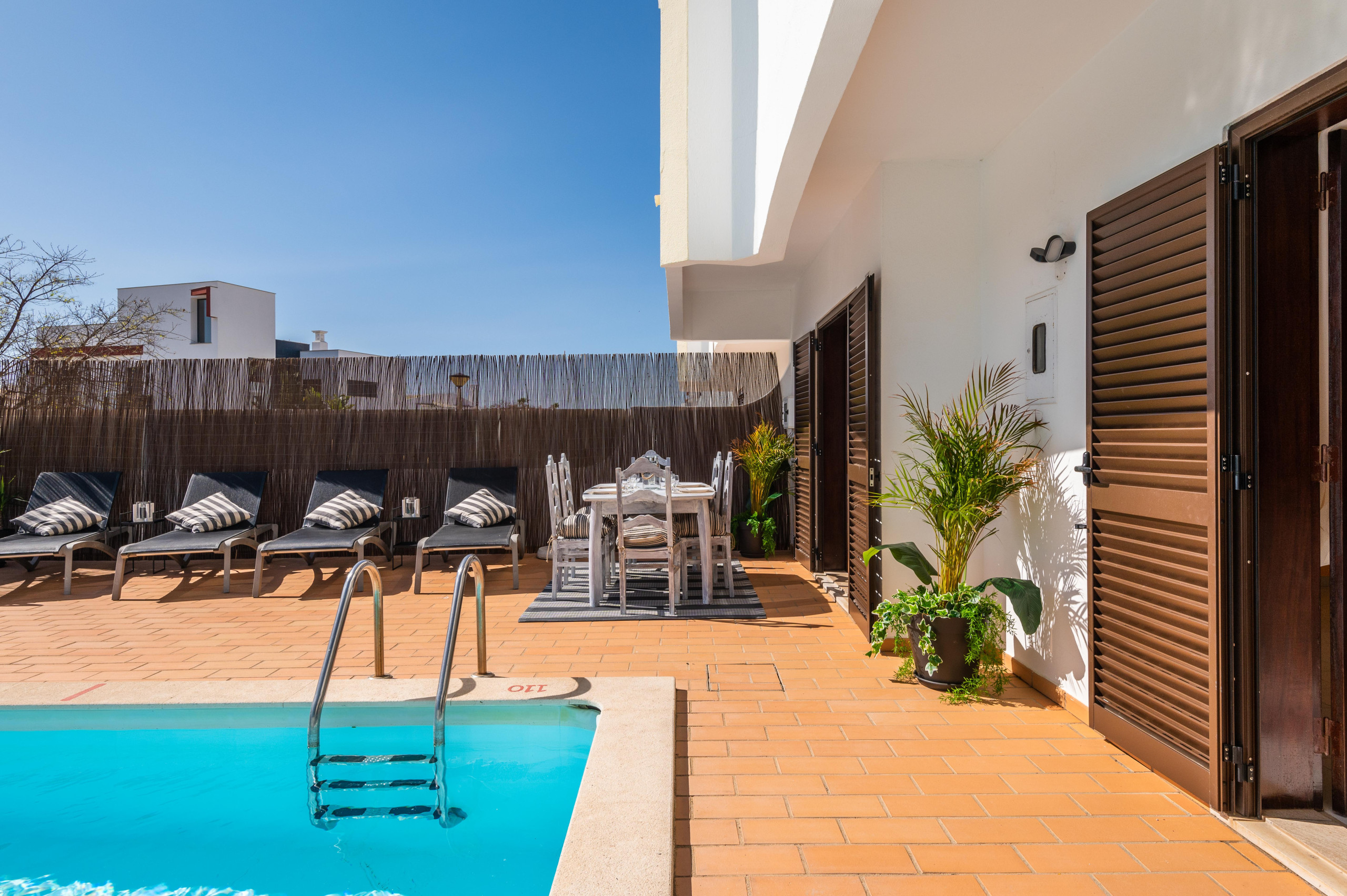Situated in Albufeira, 550 meters from Gale Este Beach, Vila Canto II features accommodation with an outdoor swimming pool, free WiFi, a 24-hour front desk, and a concierge service. This holiday home offers air-conditioned accommodation with a balcony. The holiday home has 3 bedrooms, 3 bathrooms, bed linen, towels, a flat-screen TV with cable channels, a dining area, a fully equipped kitchen, and a patio with pool views. The holiday home has a sun terrace. A barbecue is available on site and hiking can be enjoyed within close proximity of Vila Canto II. Manuel Lourenço Beach is 600 meters from the accommodation, while Balbina Beach is 750 meters from the property. The nearest airport is Faro, 31 km from Vila Canto II, and the property offers a paid airport shuttle service.